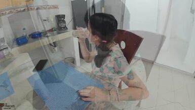 . My boyfriend's ally arrives to take some measurements at my abode, but seeing him makes me lustful and I tempt him until I give him some captivating blowjobs and I end up banging his bawdy cleft