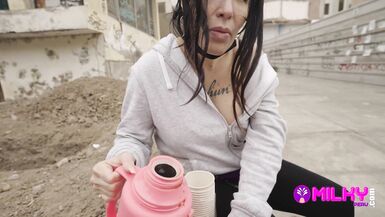 CELEBRATING THE BIRTHDAY OF A MILF SELLING COFFEE, I GAVE HER A CAKE AND THE BITCH BLEW OUT THE CANDLE