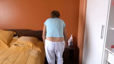 58-YEAR-OLD MATURE TRYING ON AND SHOWING OFF IN EROTIC LINGE