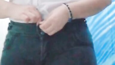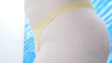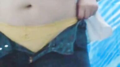 . sexy milf teen mexican show her nice body and take out all her uniform in her batrhom and shows her nice and sensual big butt and her yellow thong