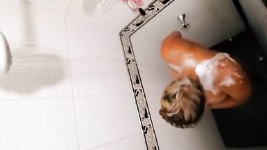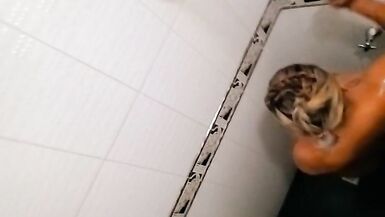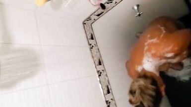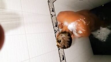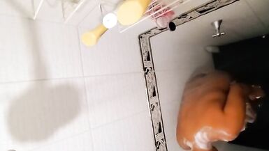 MY PREGNANT EBONY LATINA WIFE TAKING A SHOWER AND LOVES TO BE WATCHED