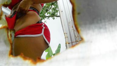 BIG-ASS LATINA WAXING HER PUSSY IN AN OUTDOOR BOOTH